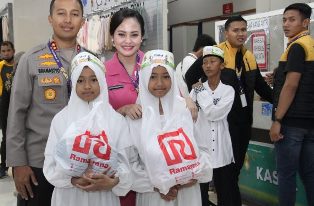Kapolres Kediri Kota AKBP Bramastyo Priaji, S.H., S.I.K., M.Si. bersama Ibu Ketua Bhayangkari Cabang Kediri Kota turut serta mendampingi anak Yatim saat berbelanja baju lebaran